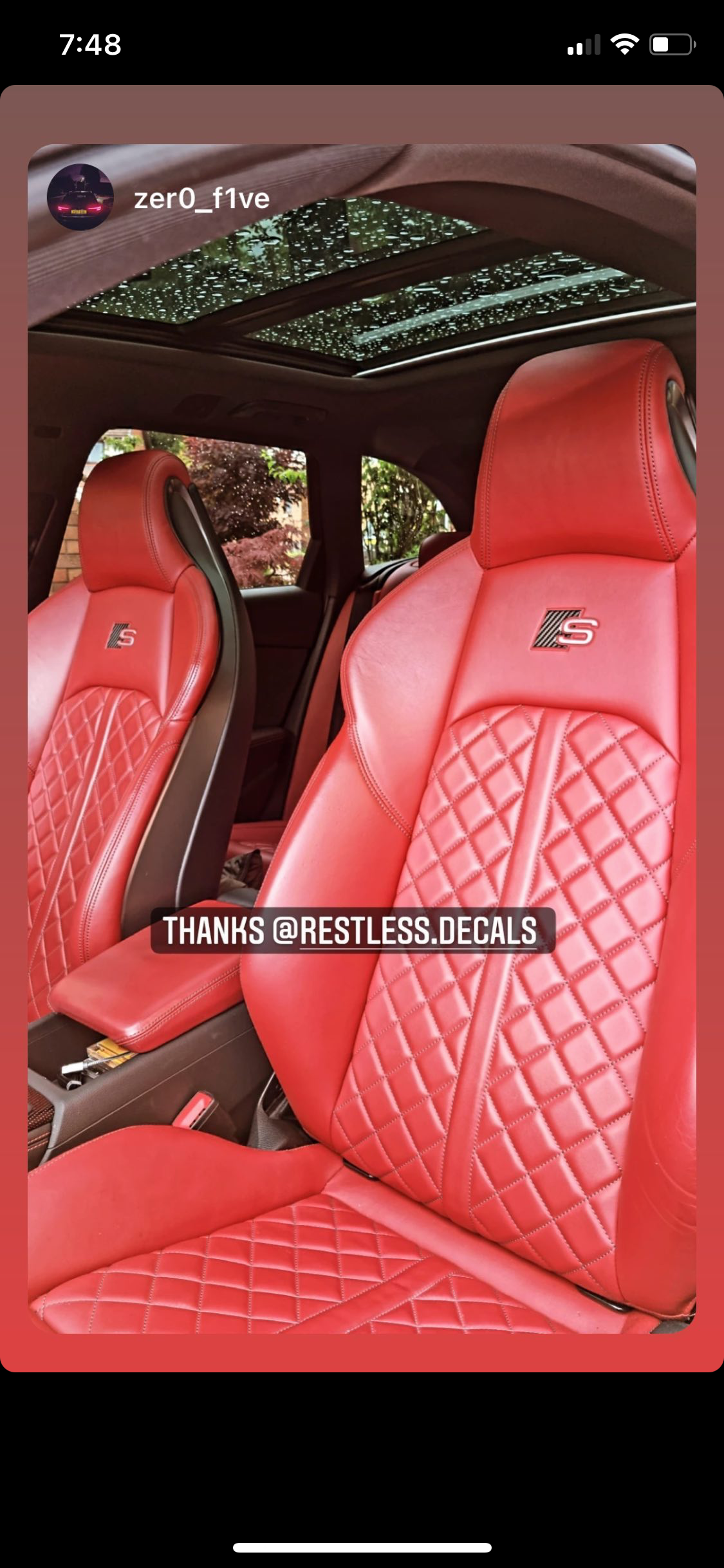- If you have any sort of coating on your seats, this decal will not adhere well to the leather surface.